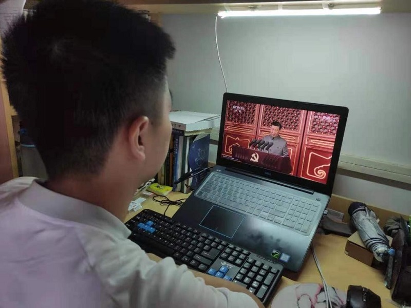7月1日,庆祝中国共产党成立100周年大会于上午8时在北京天安门广场隆重举行。数学公司党委组织师生观看电视直播。部分党员在519会议室集中收看直播,其他同志分别在315党建工作室和自己的办公室、宿舍中观看。大家对习近平总书记振奋人心的讲话反响热烈,一些同志怀着激动的心情谈体会,写下了自己的感想。