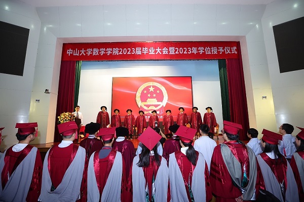 活动结尾,全体师生起立奏唱校歌——“博学审问,慎思不罔,明辨笃行,为国栋梁。”风雨兼程,奔向前程。送君一程,万里鹏程。“2023届毕业大会暨2023年学位授予仪式”至此圆满结束!全场响起热烈的掌声!愿中大学子,走出校门,能学以致用,不息自强,正因有你们,才能有:吾校矗立,蔚为国光!