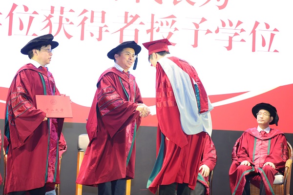 接着,阮映东书记宣读孙中山先生毕业训词,全体毕业生起立聆听:“学海汪洋,毓仁作圣,大学毕业,此其发轫。植基既固,建业立名,登峰造极,有志竟成。为社会福,为邦家光,勖哉诸君,努力自强。”先生之教诲,历久弥新,勉励着一届又一届中大学子奋发向前。