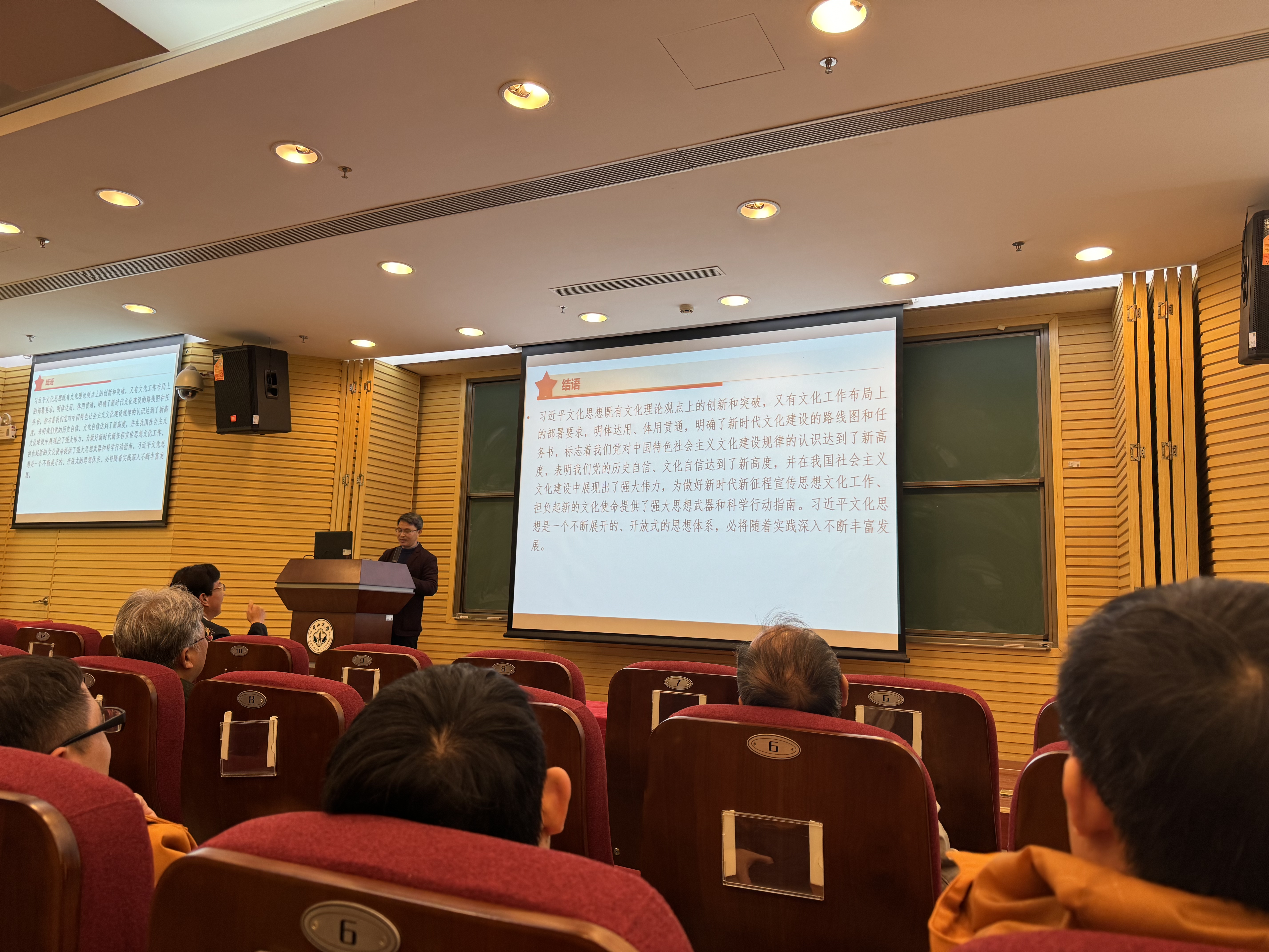 童经理从中华民族优秀传统文化的力量、中华优秀传统文化的创造性转换和创新性发展和中华优秀传统文化的当代赋能三个方面详细深入讲述了习近平文化思想的核心内容。习近平文化思想明确了新时代文化建设的路线图和任务书,标志着我们党对新时代中国特色社会主义文化建设规律的认识达到了新高度,表明我们党的历史自信、文化自信达到了新高度,并在我国社会主义文化建设中展现了强大威力,为做好新时代新征程宣传思想文化工作、担负起新的文化使命提供了强大思想武器和科学行动指南。