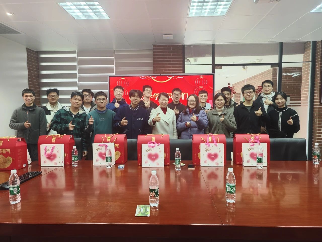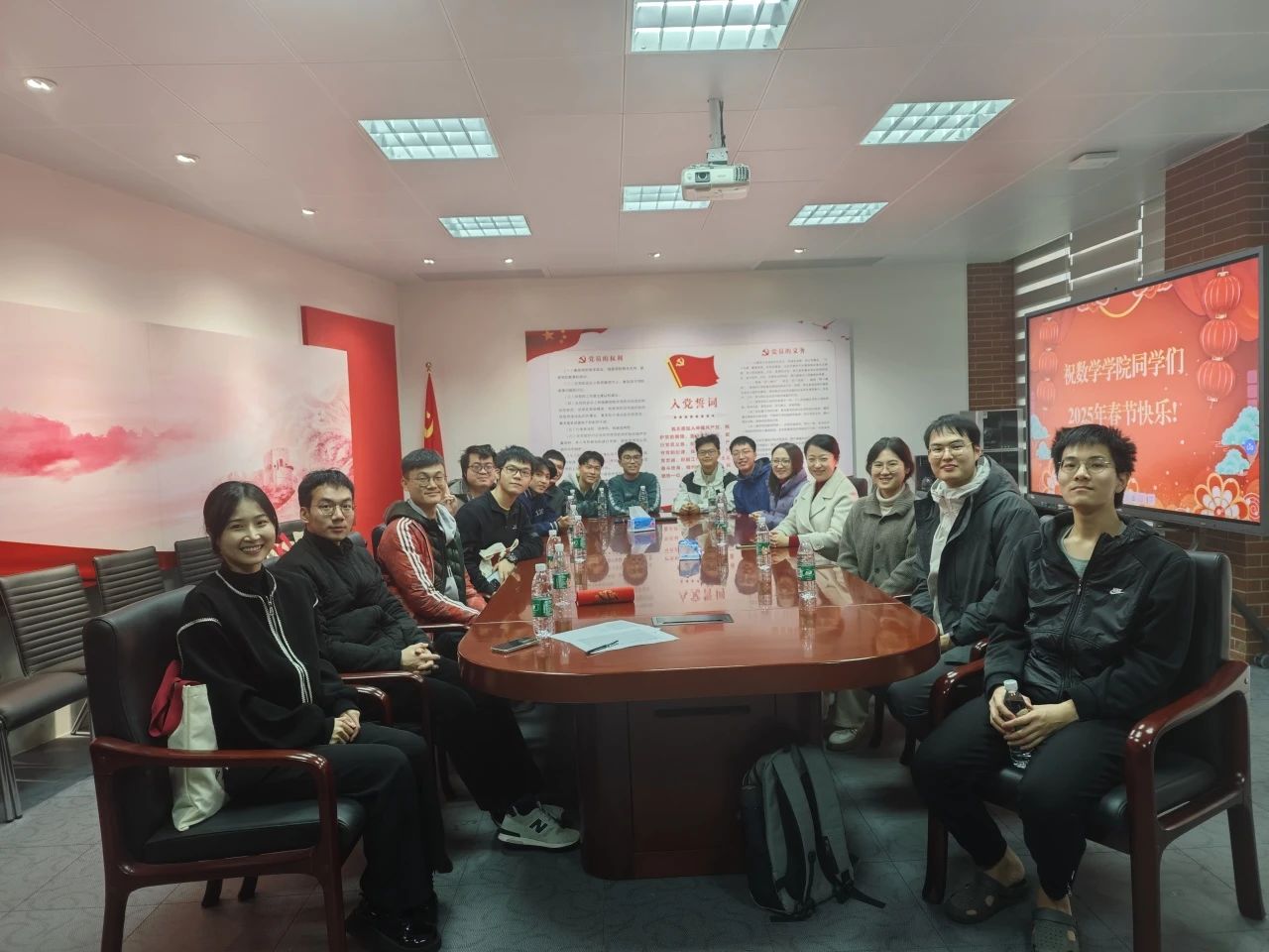 2025年1月26日,2025年乙巳春节到来之际,ylg060net永利娱高在新数学楼315室举办2025年春节留校员工慰问活动。公司党委副书记周妍老师、公司团委书记杨晓静老师、研究生教务姚璐老师以及粤港澳应用数学中心黄致远老师与留校同学欢聚一堂,喜迎蛇年春节。